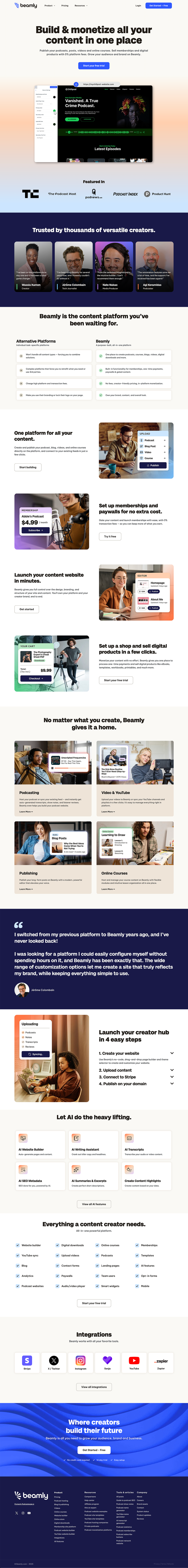 Beamly (formerly Podcastpage.io) came to Fletch as they were rebranding and expanding beyond podcasting. While their original messaging was clear, it was narrowly focused and didn’t reflect the broader set of creators they were starting to attract. Fletch helped Beamly define a new positioning, make their core capabilities obvious, and build a message that speaks directly to modern creators – not just podcasters.