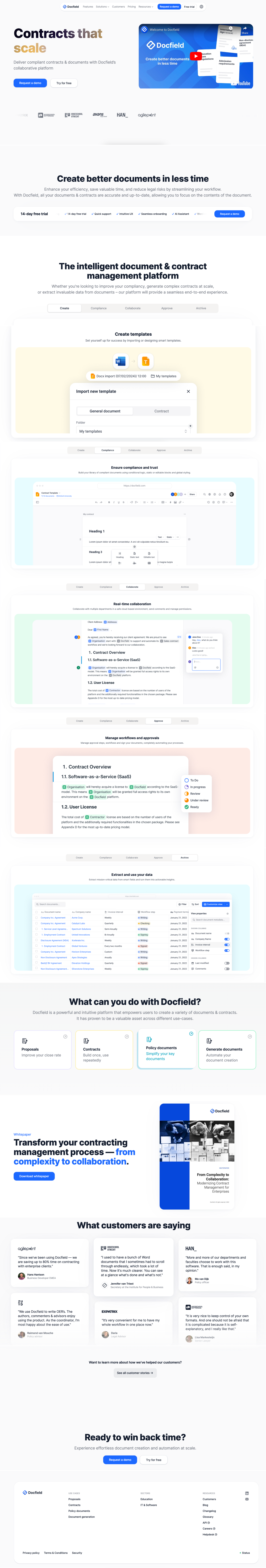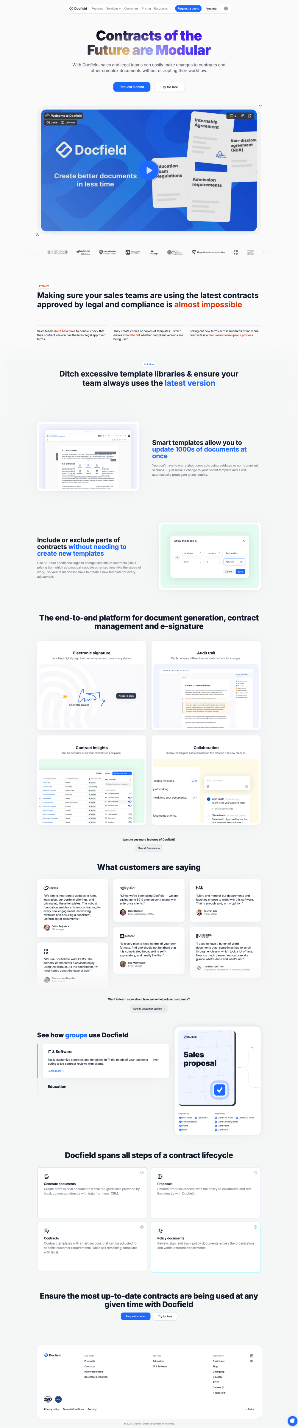 Docfield came to Fletch looking for help with broadening their positioning beyond their initial target market. In order to accomplish this (without creating a vague, ambiguous message), we recommended that they take a category-based positioning approach, and play directly in the contract management space — while leading with their key differentiation (i.e. the modularity of their contract-builder).