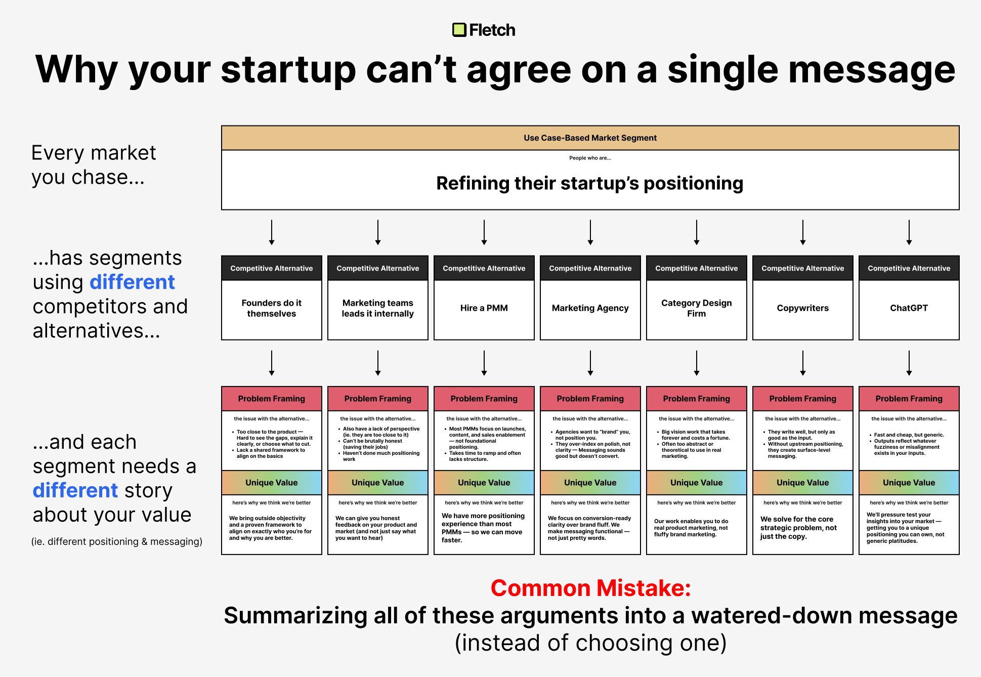 ❌ So the idea that you can communicate across all this fragmentation and uniqueness with a single big message is downright comical — it's not specific enough to resonate with anyone.